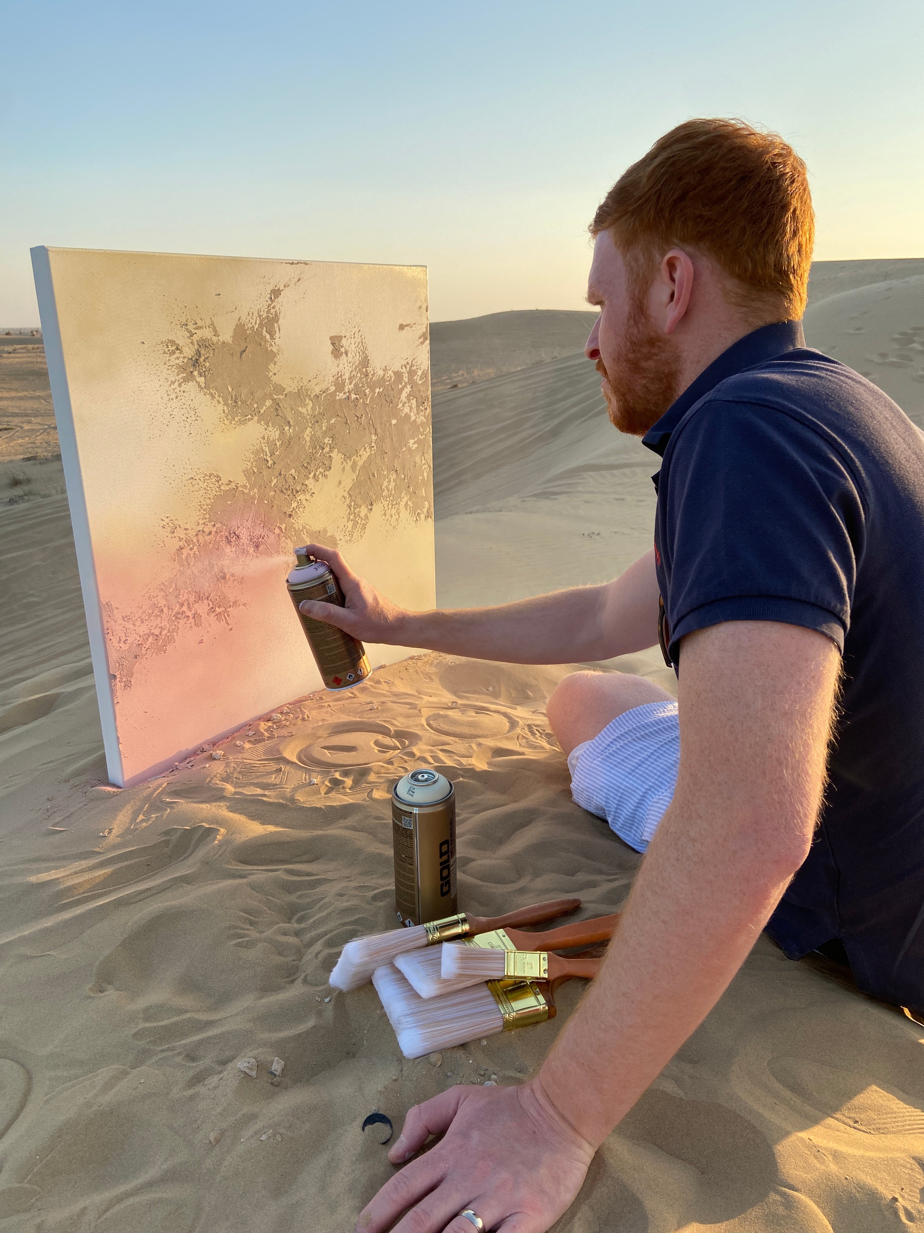 Tom takes inspiration from the natural landscape and in particular, the sea, sky, desert and space. This includes the rural aspects around his home in Warwickshire, along with the coastal beauty of Dartmouth, Devon and the desert in Dubai when visiting family.
